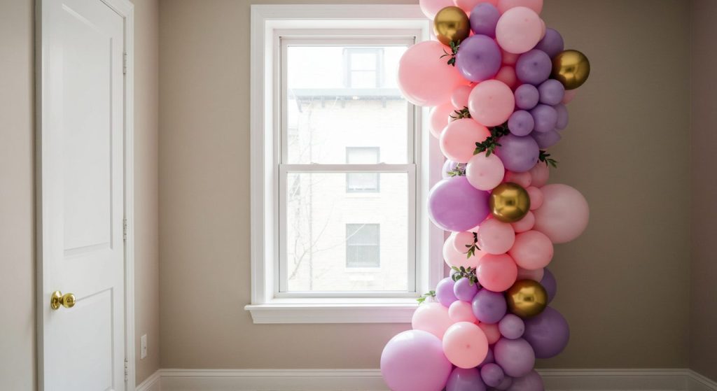 Frame entryways with balloon arches that hug the doorframe instead of extending into the room. This creates a festive entrance and photo opportunity without consuming precious floor space in your gathering area.