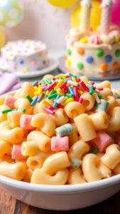 These macarons are soft and chewy, filled with a creamy frosting that mimics the taste of birthday cake. Each bite offers a delightful sweetness, with a hint of vanilla, making them a delightful choice for any festive occasion.