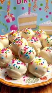 Adding garnishes like fresh berries and a dollop of whipped cream elevates the visual appeal even further. It’s an inviting sight that beckons guests to indulge in a sweet treat, perfectly suited for birthday festivities.